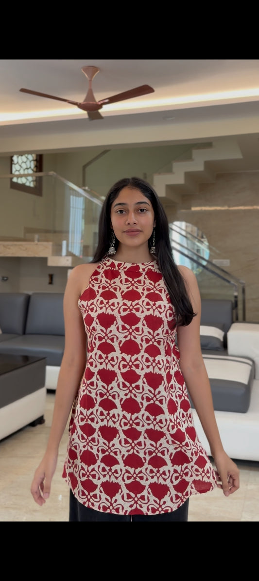 Crimson Maroon Aura Halter Short Kurti with Pocket