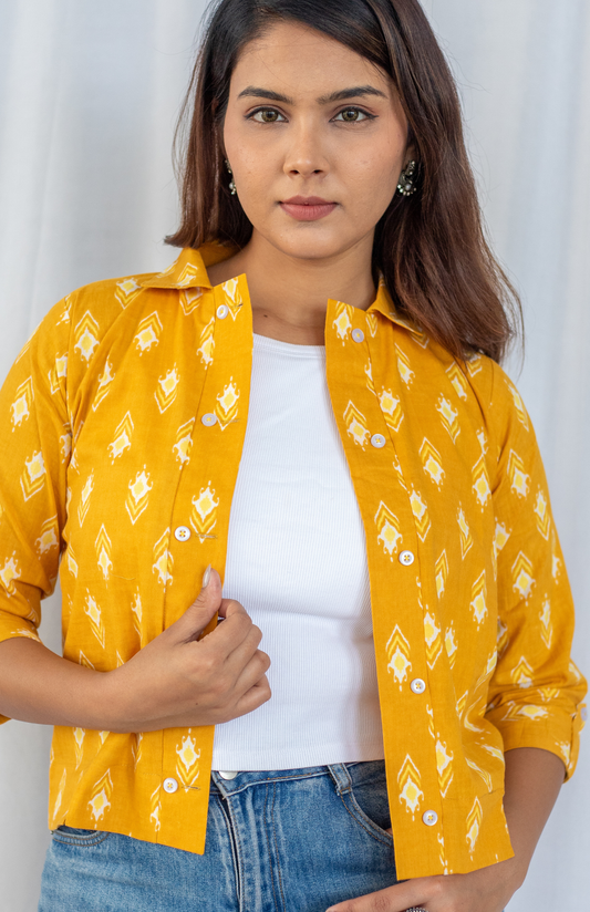 Mustard Yellow Ikat Print Double Button Shirt