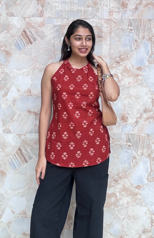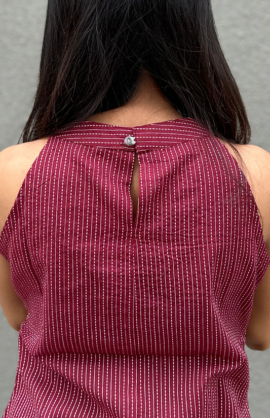 Maroon Halter Neck Cotton Top with Back Detailing
