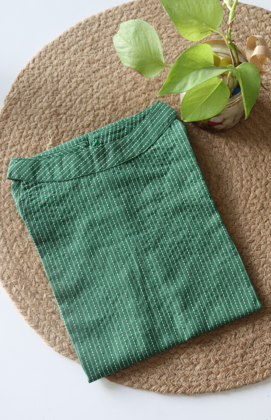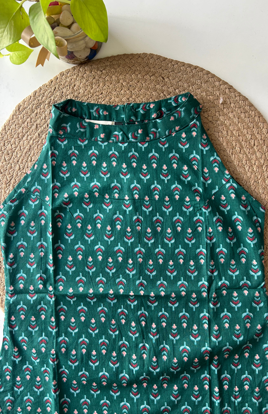 Bottle Green Cotton Halter Neck Short Kurti
