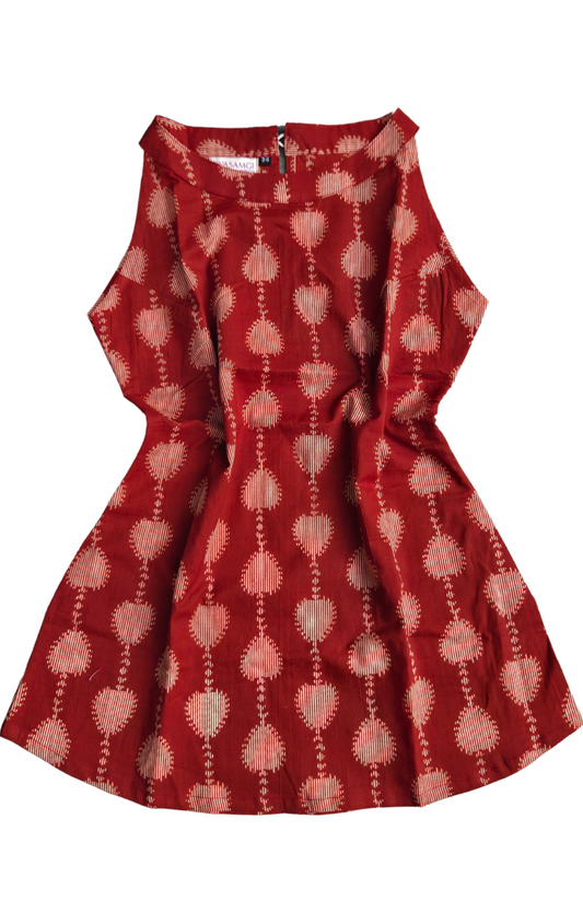 Red Bandhani Halter Neck Cotton Top