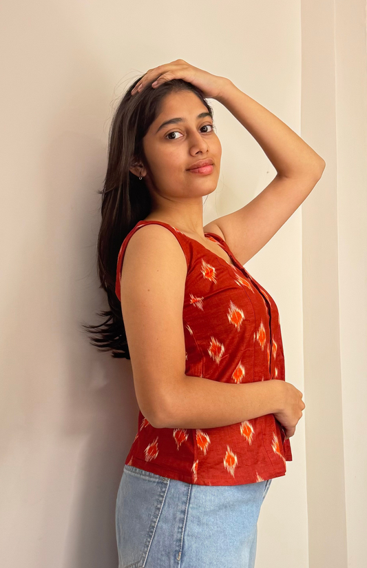 Cinnamon Ikat Sleeveless Summer Cotton Top