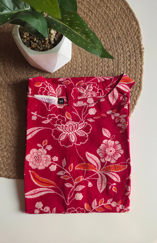 Pink Floral Cotton Halter Neck Short Kurti
