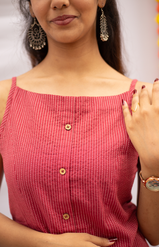 Maroon Kantha Work Noodles Strap Elegant Cotton Top