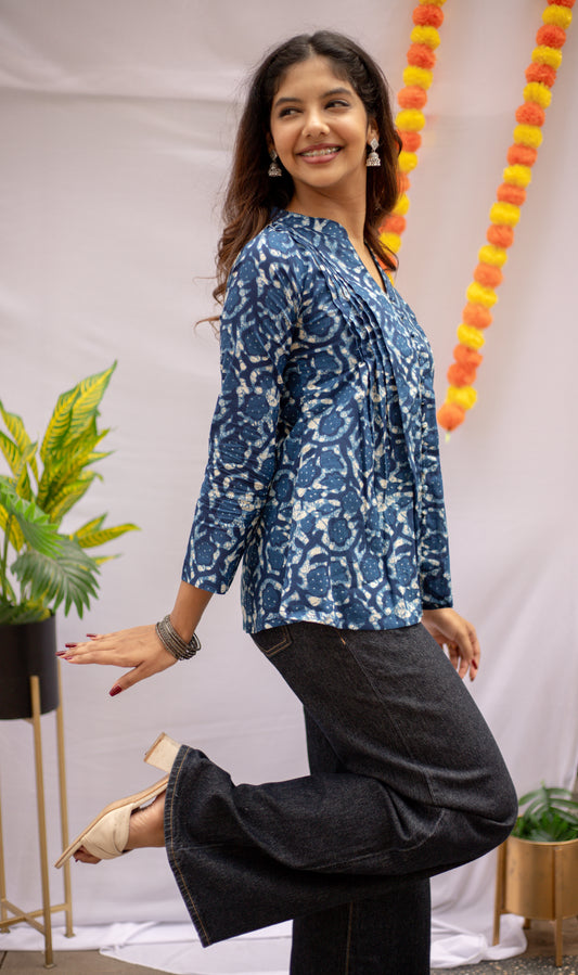 V Neck Maroon Color Leaf Print Cotton Short Kurti